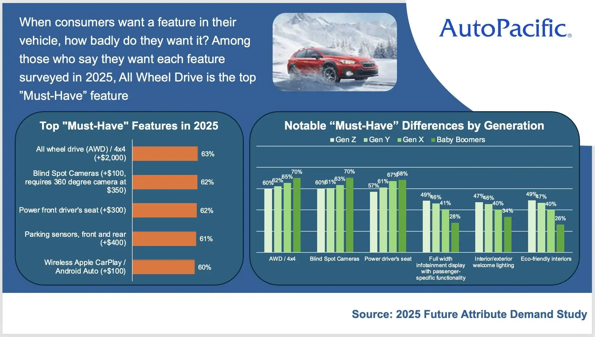AWD, Blind Spot, Power Seats, Parking Sensors, CarPlay & Android Auto–Top Wanted Car Features